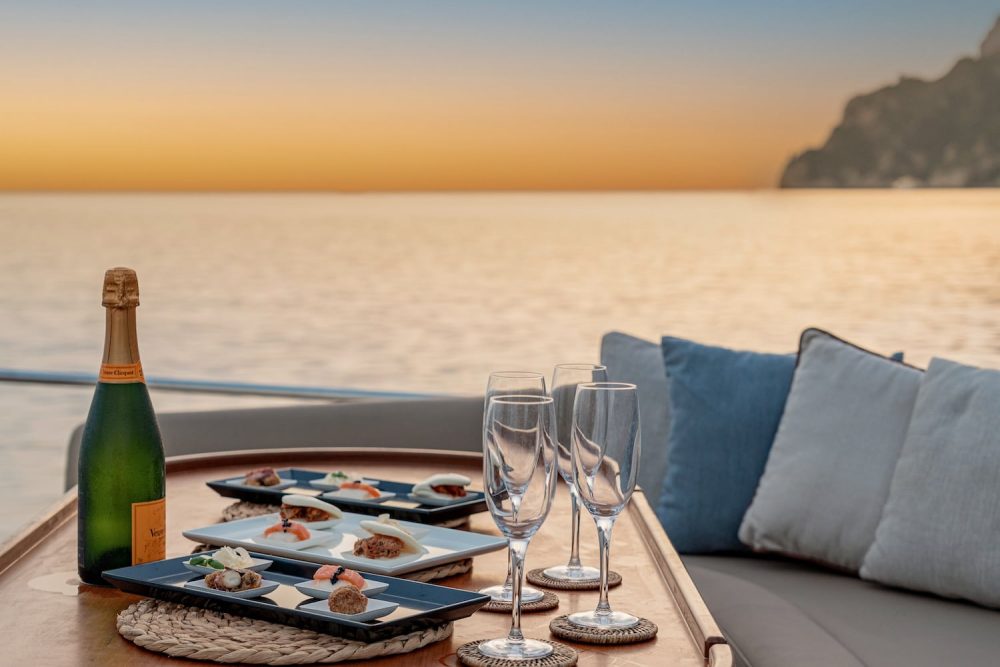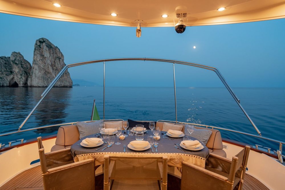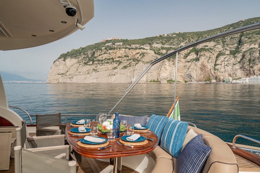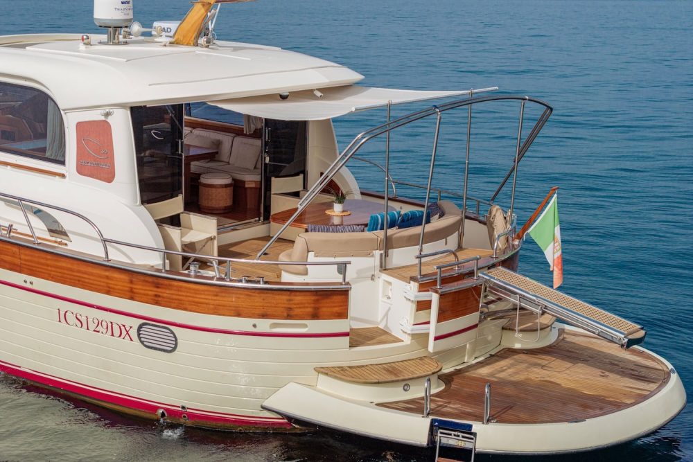 Magistra, an Apreamare yacht, crafted in Sorrento, Italy stands for quality, tradition and design integrity. Renowned as the ‘Bentley of the sea’ , sophisticated and spacious, combining old traditional style into a modern design classic. Reliable, comfortable, but especially agile and fast. Elegant deck lines of the Apreamare 60, with the large size of the side walkway, allow you to move around with great ease. The large sundeck and sofas provide spacious areas to relax and sunbathe. The epitome of high-end Italian yachts for those who wish to charter with relaxed elegance and style. It is the perfect mode of choice to enjoy the splendor of the Amalfi Coast and surrounding islands